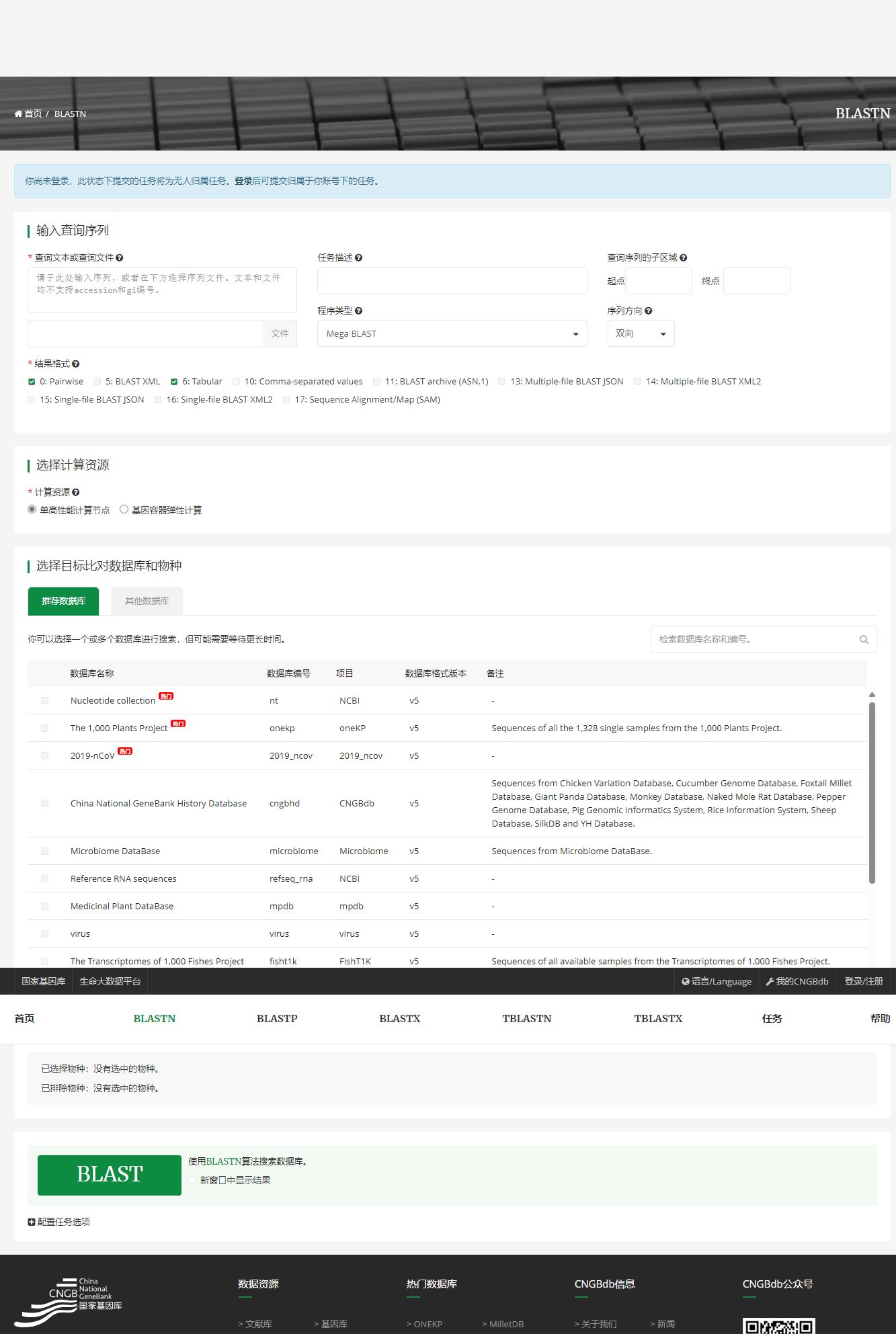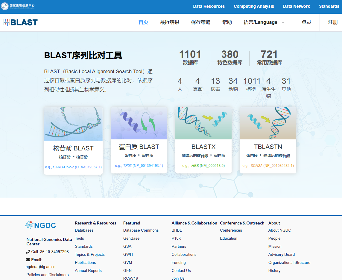 NCBI-BlAST访问慢?用国内的! 2025年3月15日 zd200572 写评论 国家生物信息中心NGDC<br>https://ngdc.cncb.ac.cn/blast/home<br>国家基因库CNGB<br>https://db.cngb.org/blast/blast/blastn/<br>国家微生物科学数据中心NMDC<br>https://nmdc.cn/analyze/blast/blastn?id=6007e7c00b38496ee0c909fb 本篇文章来源于微信公众号:微因