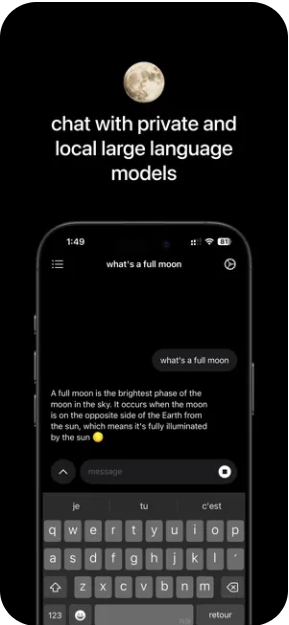 Fullmoon是一款专为iOS设备设计的应用程序,旨在提供与本地大语言模型进行私密聊天的功能。该应用优化了Apple Silicon,支持在iPhone、iPad和Mac上运行。用户的聊天记录会被本地保存,并且可以自定义应用的外观。Fullmoon利用了Apple的MLX Swift框架,这是一个用于在Apple Silicon上进行机器学习研究的数组框架。该应用支持多种语言模型,包括Llama 3.2 1B、Llama 3.2 3B和DeepSeek-R1-Distill-Qwen-1.5B-4bit。