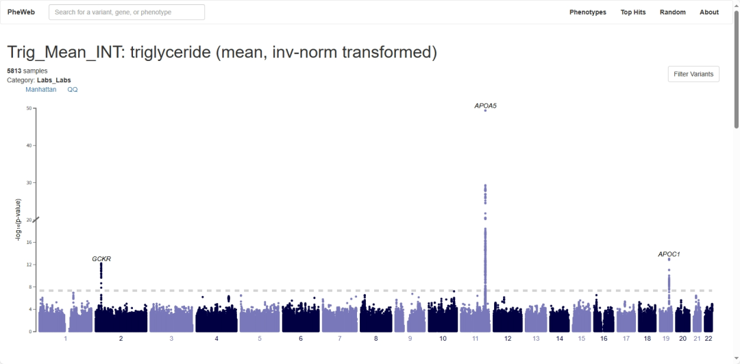 不过开放程度和中国的CKB有些类似,基本只限于网页上的位点的展示,详细信息需要申请。GRCh38,只显示大约 5000 个Top位点,请访问 dbgap 获取完整结果