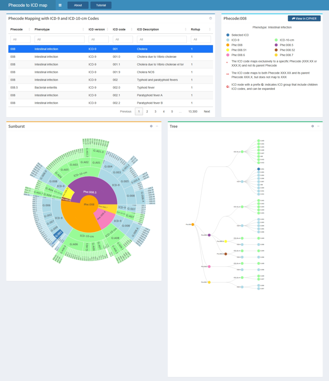 基于电子健康记录 (EHR) 的研究在研究中具有多种优势:它们具有成本效益,允许进行大规模纵向分析,并有可能分析数百种人类疾病、药物反应和许多可观察到的临床特征。可视化从 Phecode 到国际疾病分类 ICD-9 和 ICD-10 代码的映射。