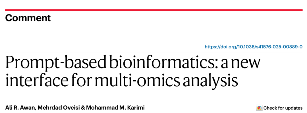 参考文献:Awan, A.R., Oveisi, M. & Karimi, M.M. Prompt-based bioinformatics: a new interface for multi-omics analysis. Nat Rev Genet (2025). https://doi.org/10.1038/s41576-025-00889-0